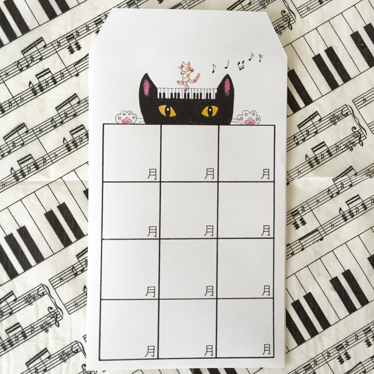 お月謝袋「ピアノと猫」