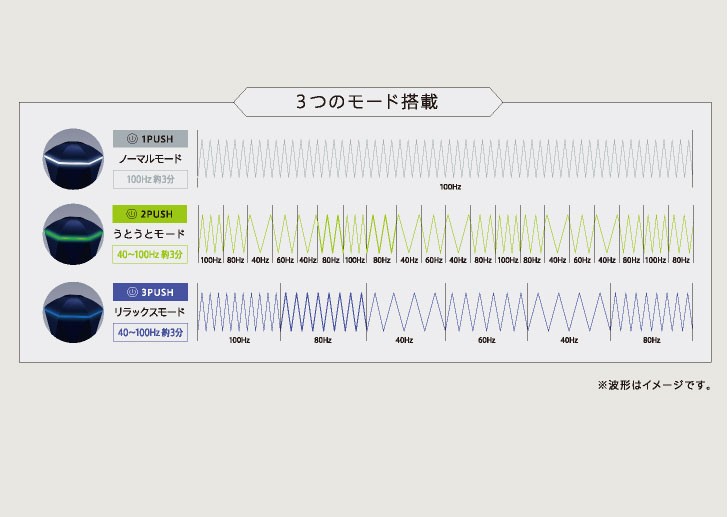 心地よい一定のリズムで刺激するノーマルモードが新しく加わり、3つのモードからお好みのプログラムを体感できます。ワンボタンで簡単操作です。モードに合わせて変わるLEDライトを搭載しました。