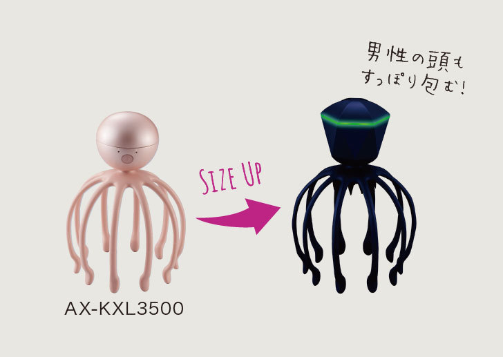 全体を深めに包み込むようサイズを改良。男性にも使いやすくなりました。※従来比(AX-KXL3500)