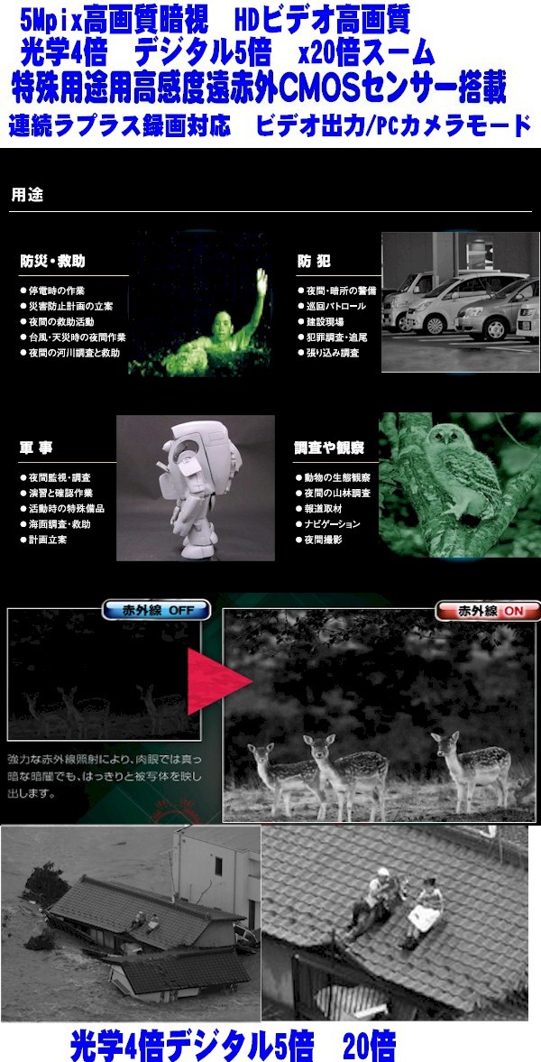 もできます。災害や救助、防犯の緊急暗闇撮影に役立ちます。