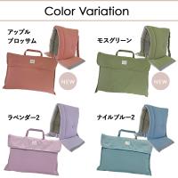 防災頭巾カバーは、イスの背もたれや座布団としても使える2WAY仕様。ショルダー紐付きで、持ち運びも考慮した防災頭巾カバーです。