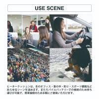 ○電気で10秒発熱!お持ちのモバイルバッテリーに繋いで電源を入れるだけ!自宅やオフィス、車や屋外のスポーツ観戦や釣り、ピクニックなど、どこでも使えるヒートクッション。