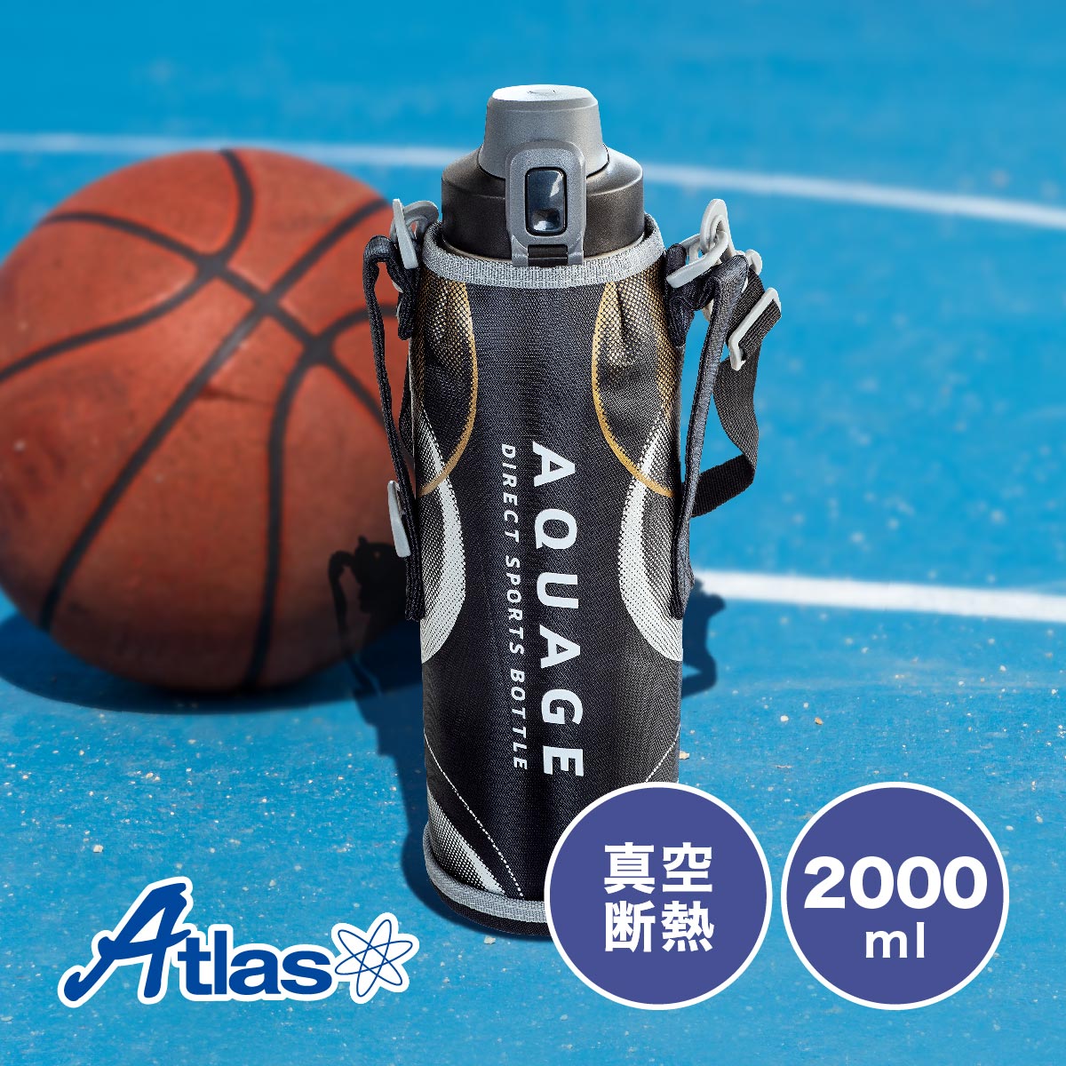 水筒 2リットル 保冷 軽量 軽い 子供 真空断熱 ステンレス ワンタッチ ダイレクトボトル 直飲み ポーチ付き 部活 スポーツ アクアージュ アトラス ADBT-2001