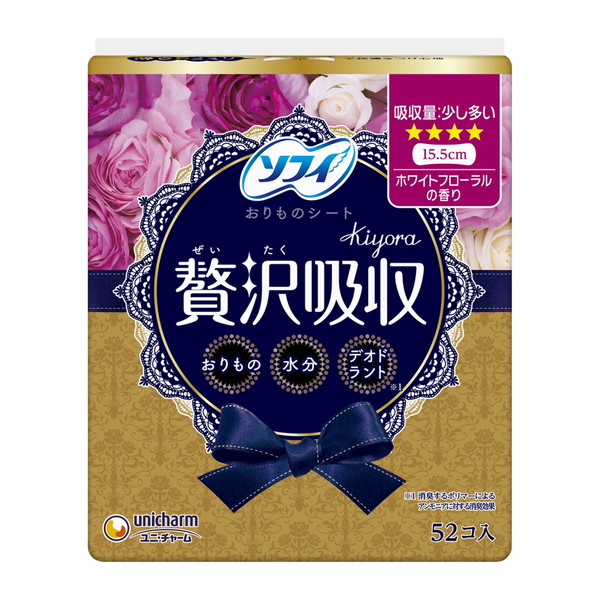 商品名:ユニ・チャーム ソフィ Kiyora ぜいたく吸収 ホワイトフローラル 少し多いタイプ 52コ入