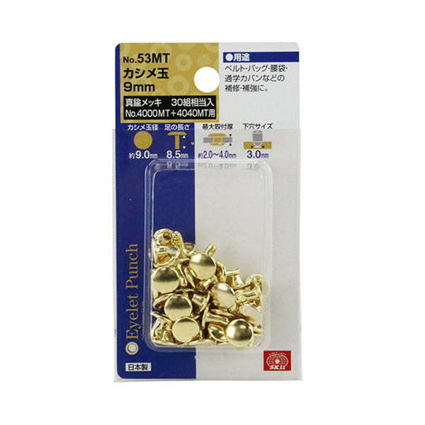 藤原産業 SK11 カシメ玉 9mm 真鍮メッキ NO.53MT 30組相当入り