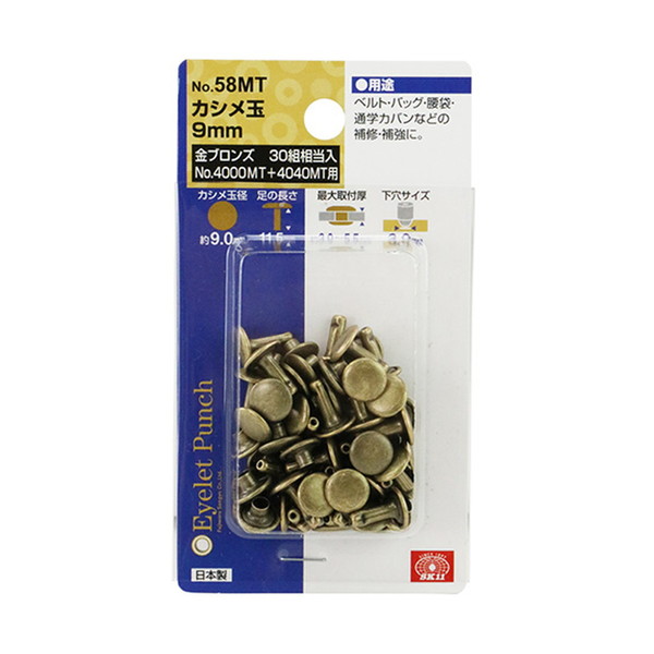 商品名:藤原産業 SK11 カシメ玉 9mm 足長 金ブロンズ NO.58MT 30組相当入り