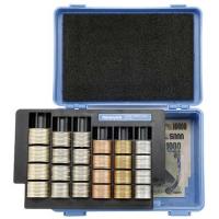 上段トレーは取り外し可能。6種類の硬貨を50枚づつ収納可能。10枚づつ仕切ってあるため収納金額が一目で分かります。