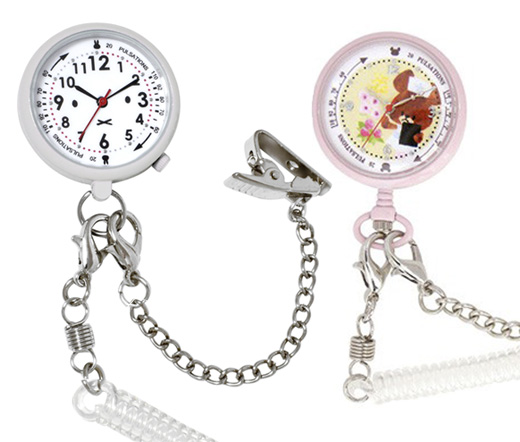 ナース専用の時計は胸や腰に下げておいて、持ち上げて時間を見るのに便利なように