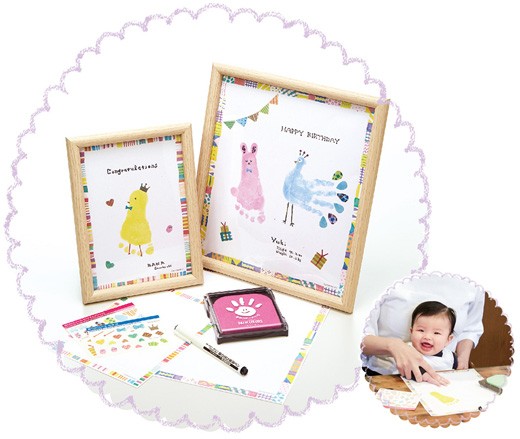 カラフルな手型や足型のスタンプをシールやペンで装飾して、世界に一つだけの作品を作るアート制作キット。お部屋のインテリアとしてはもちろん、プレゼントにもぴったり♪