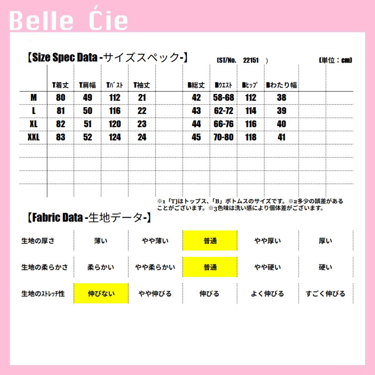 【XL】:T着丈82 T肩幅51 Tバスト120 T袖丈23 B総丈44 Bウエスト66-76 Bヒップ116 Bわたり幅40