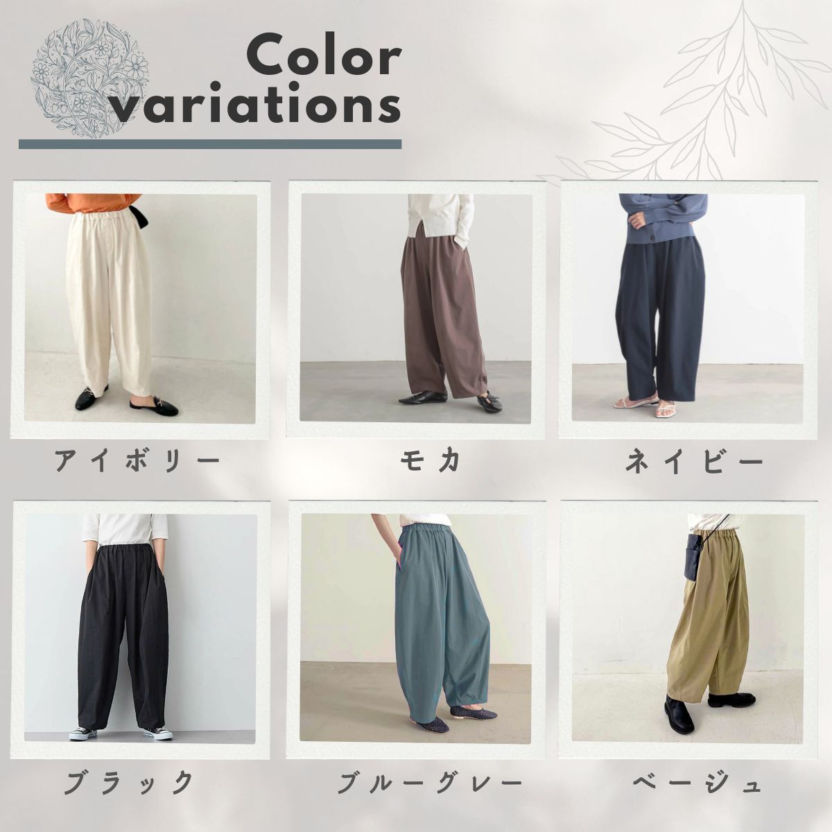 カラー展開:アイボリー/ブラック/モカ/ネイビー/ブルーグレー/ベージュ
