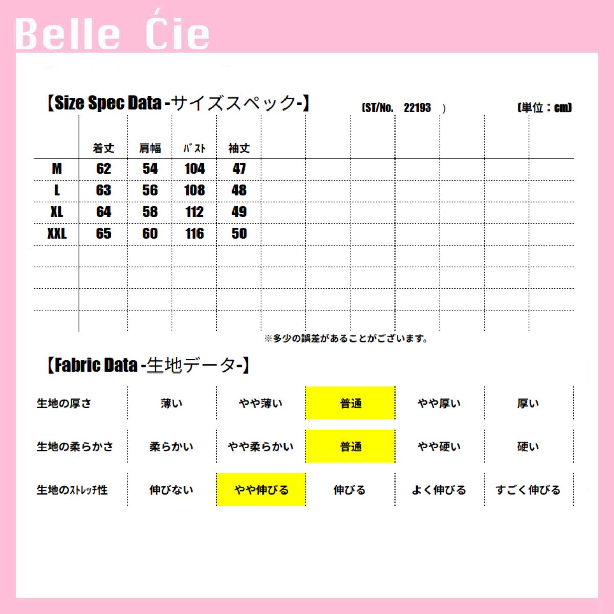 【XL】:着丈64 肩幅58 バスト112 袖丈49