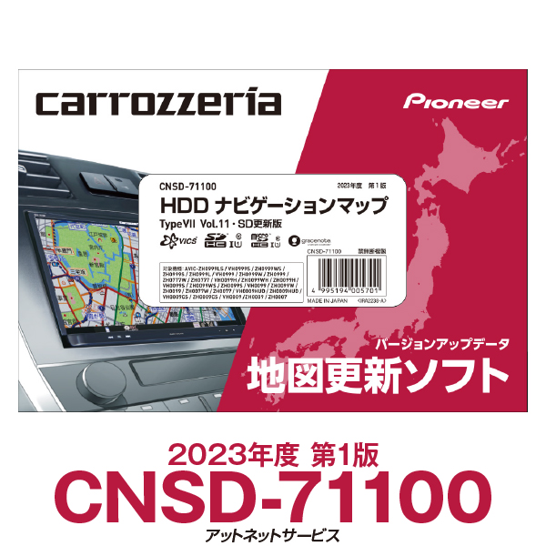 ※上記に記載の地図及び道路情報は、2022年9月調査時点で、開通済のデータと2023年4月1日までに開通予定の道路データです。 開通期日などが変更になることにより実際の道路と異なることがあります。最新情報は、パイオニアカロッツェリアサイトでご確認ください。■CNSD-71100対象機種:
