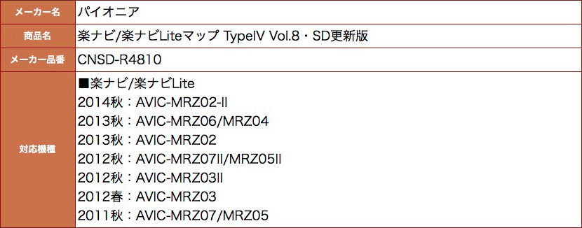 楽ナビ/楽ナビLiteマップ TypeIV Vol.8・SD更新版