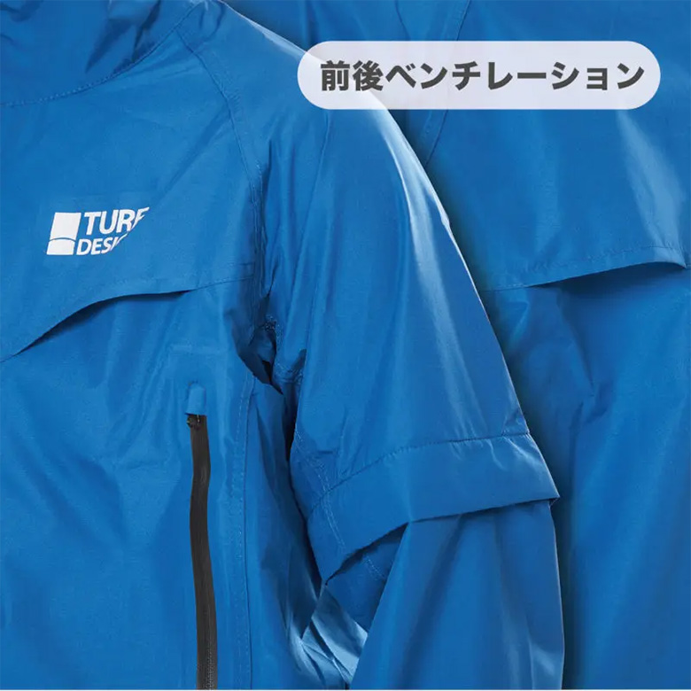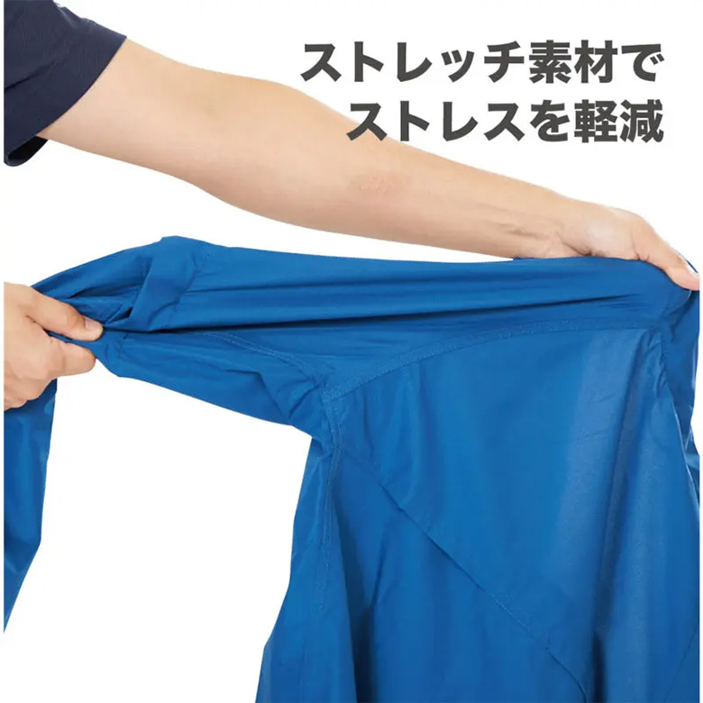 ストレッチ生地を採用。スイング時のストレスを軽減するレインウエア。
