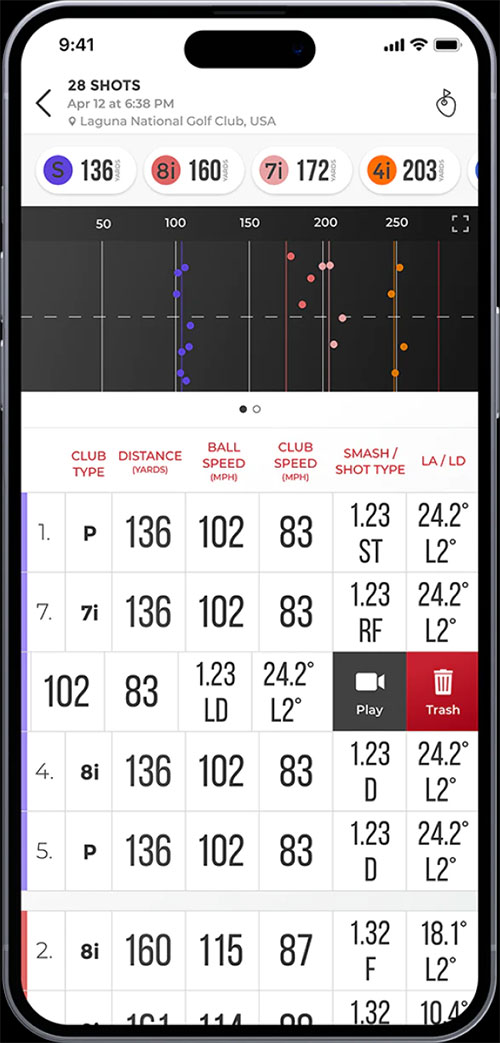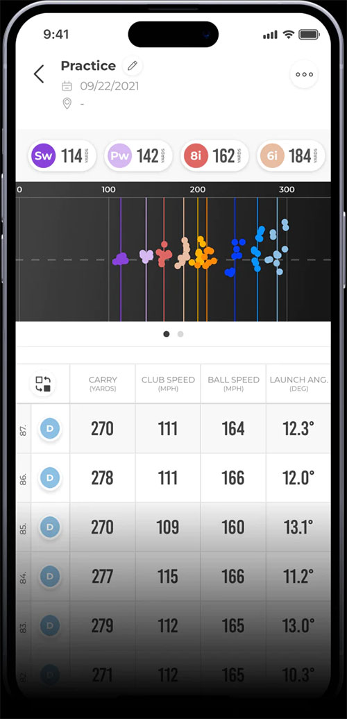 MLM2PROはショット毎を保存しますので、いつでも比較と分析できます。プレミアムメンバーシップで後方+弾道トレーサーの動画もスローモーションリプレイの動画も保存して見ることができます。