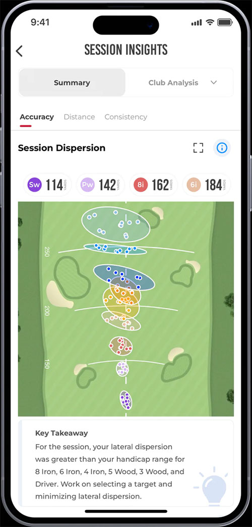 MLM2PROでショットばらつきを提供して、持っているそれぞれのクラブのパフォーマンスをもっと理解して、コースにでクラブの選択しやすくなります。