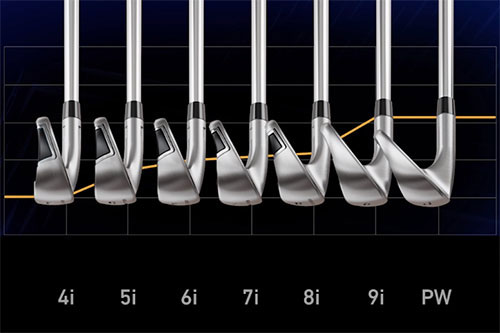 番手別に最適化したフェースデザインに、キャップバックデザイン、貫通型スピードポケットなどのテクノロジーを統合的にアプローチすることで、番手毎に最適なヘッド設計が可能に。