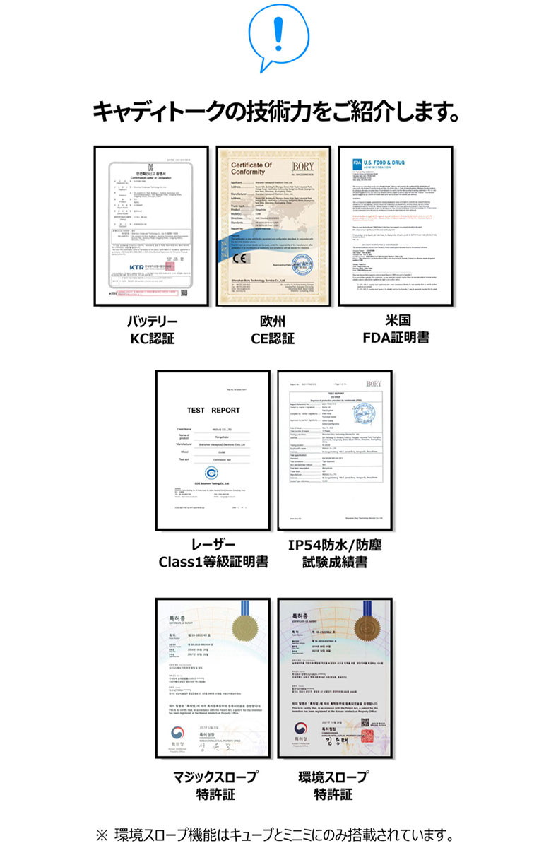 | 電源 | 3.7V 500mAh充電式内臓バッテリー(フル充電の所要時間約70分、フル充電基準約8,000回測定可能) |