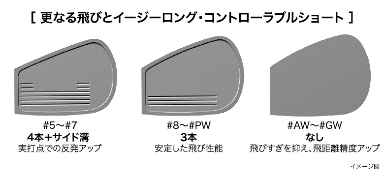 フェース裏溝の本数・配置を最適化した「番手別バックフェースグルーブ」を搭載。