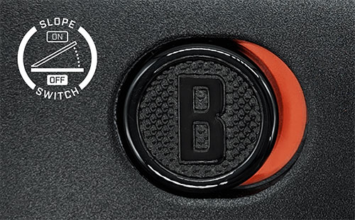 左側面のスライド切替スイッチで「スロープモード」、「直線距離モード」に瞬時に切替。