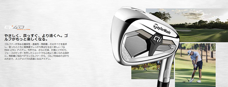ワイドなヘッド形状で、さらなる飛距離とやさしさを追求した「Qi MAX LITE」アイアン。広めのフェースに、長いブレードレングス、厚めのソールで、構えた時の安心感と高い寛容性を実現。