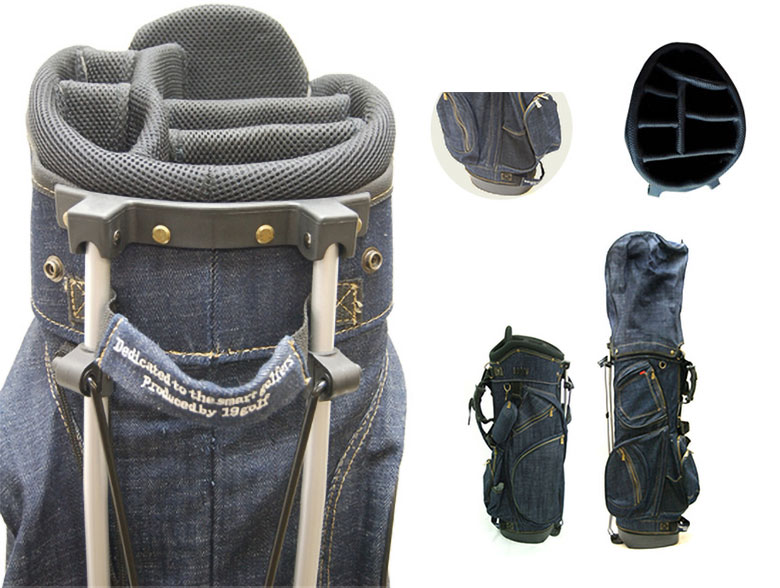 使い込むほど色落ちを楽しめるデニム生地の19ゴルフのキャディバッグです。