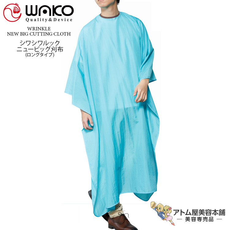 WAKO(ワコウ)No.5512 シワシワルック ニュービッグ刈布 ロングタイプ【クロス 刈布 カットクロス 撥水 シワ加工 帯電防止加工 制菌 撥水 消臭 サロン専売品 美容専売 業務用 プロ愛用 ホワイト ライトピンク ライトブルー】