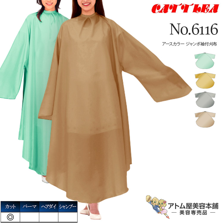 業界最大級のジャンボサイズ! しわ加工による優しい肌触りと暑い季節にも快適な「軽くて」「ソフト」な袖付刈布です。 生地に静電気防止する高性能導電糸を織り込む事により、洗濯や摩擦による効果の劣化がなく、制電効果が半永久的に持続します。 静電気によるホコリや細かな髪の毛も落ちやすい高機能カットクロスです。 前後合わせて230cmの身幅と理美容業界最大級のジャンボサイズ。ソファータイプのサロンチェアにも対応しています。 ◎アースカラーとは?アースカラー(Earth tone)とは、地球の大地や植物などの自然物をイメージした茶色や緑色の色を総称するアパレル用語です。自然志向の概念で自然をフィーチャーした要素がトレンドになり、もともと肌なじみが良いカラーですので、気持ち良く身に付けられるカラーです。 ・カット:◎ ・パーマ:× ・ヘアダイ:× ・シャンプー:× |