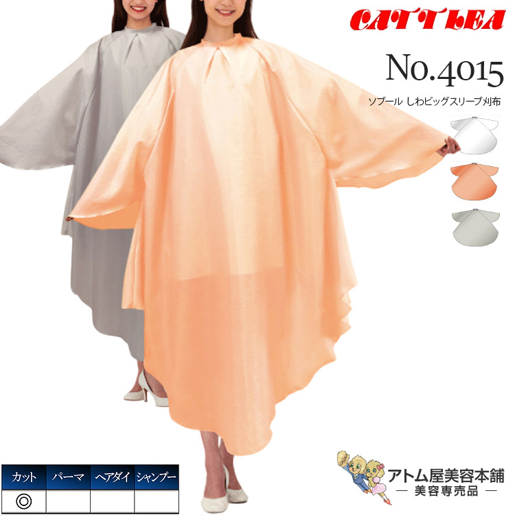髪の毛を落とす事に特化した究極の刈布! 制電性ポリエステル糸を織り込んだ素材にしわ加工を加え、その上に強力持続静電気防止加工をほどこした髪の毛を落とす事に特化した究極の刈布(カットクロス)です。 生地内に制電性糸が織り込まれていますので、繰り返し洗濯しても制電効果が持続します。 開放的な袖口とゆったりしたサイズで通気性を追求した快適なスタイルです。 前丈130cm、後丈100cm、身幅210cmのビッグサイズ。背中割れを起こしません。 ◎ワイドスリーブ 開放的でゆったりとした袖口で通気性に優れたスタイルです。 ◎髪を付着させない3つの対策 髪の毛を付着させない3つの対策で、髪の毛を落とす事に特化したカットクロスです。 ・生地内に制電性糸が織り込まれていますので繰り返し洗濯しても制電効果が持続し続けます。 ・生地表面に凸凹をつける事により、毛髪を浮かせ落とし易くします。 ・カット:◎ ・パーマ:× ・ヘアダイ:× ・シャンプー:× |
