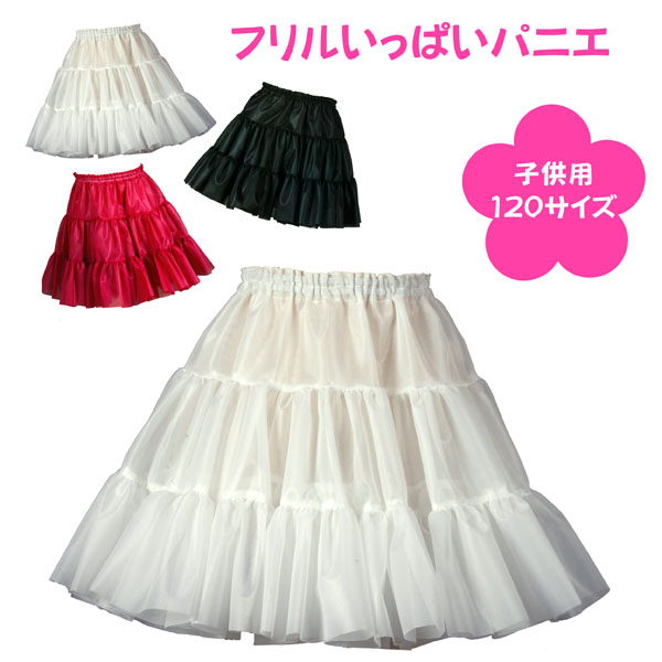 パニエ 子供用 ハロウィン 白 黒 赤 ボリューム フォーマル 入園 入学 結婚式 フラダンス 発表会 七五三< フリル いっぱい パニエ 120サイズ 38cm丈 >