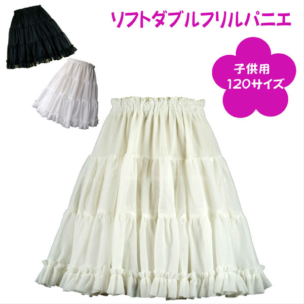 パニエ 日本製 子供用 120サイズ ソフトダブルフリルパニエ♪ ペチコート スカート ワンピース ピアノ 結婚式 お祝い アイボリー ホワイト ブラック 発表会
