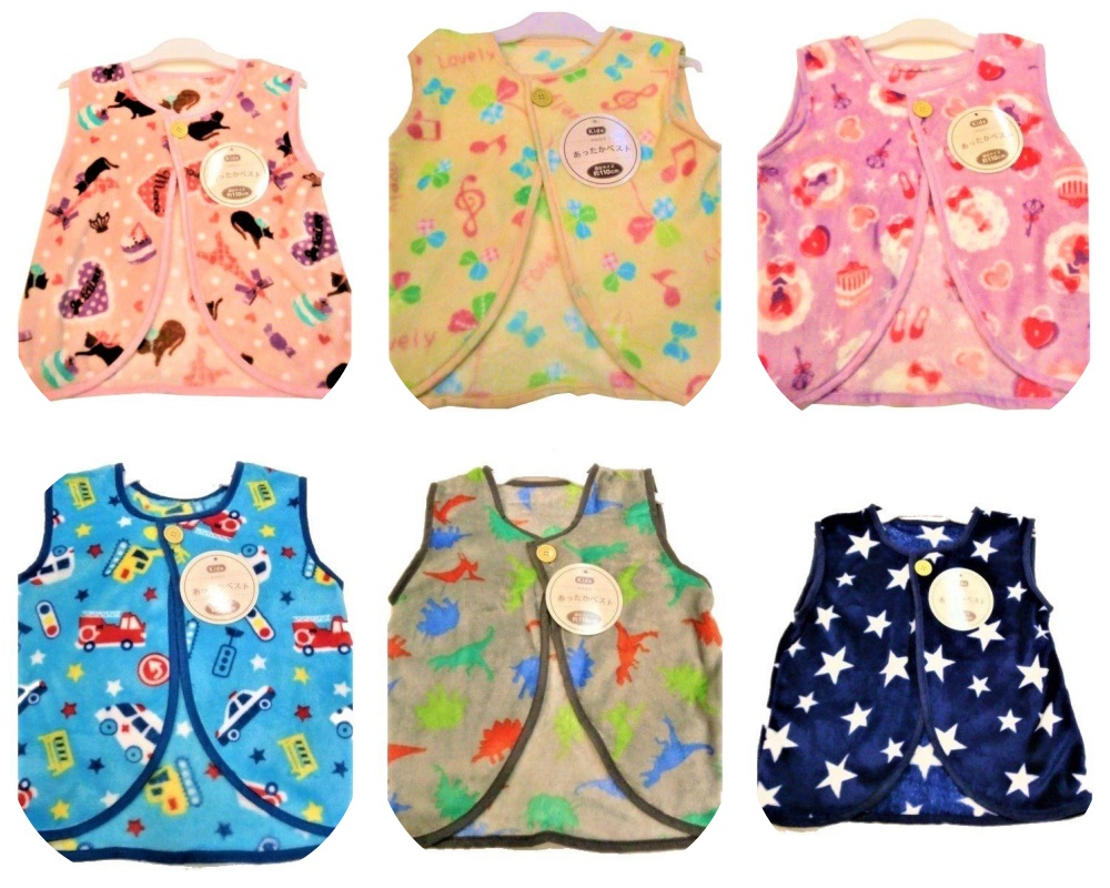 キッズ 子ども服 男女兼用 秋冬フリース前開きベスト 猫ピンク 音符イエロー リボン&ハート柄ラベンダー 自動車ブルー 恐竜グレー 星ネイビー 110cm 130cm s110