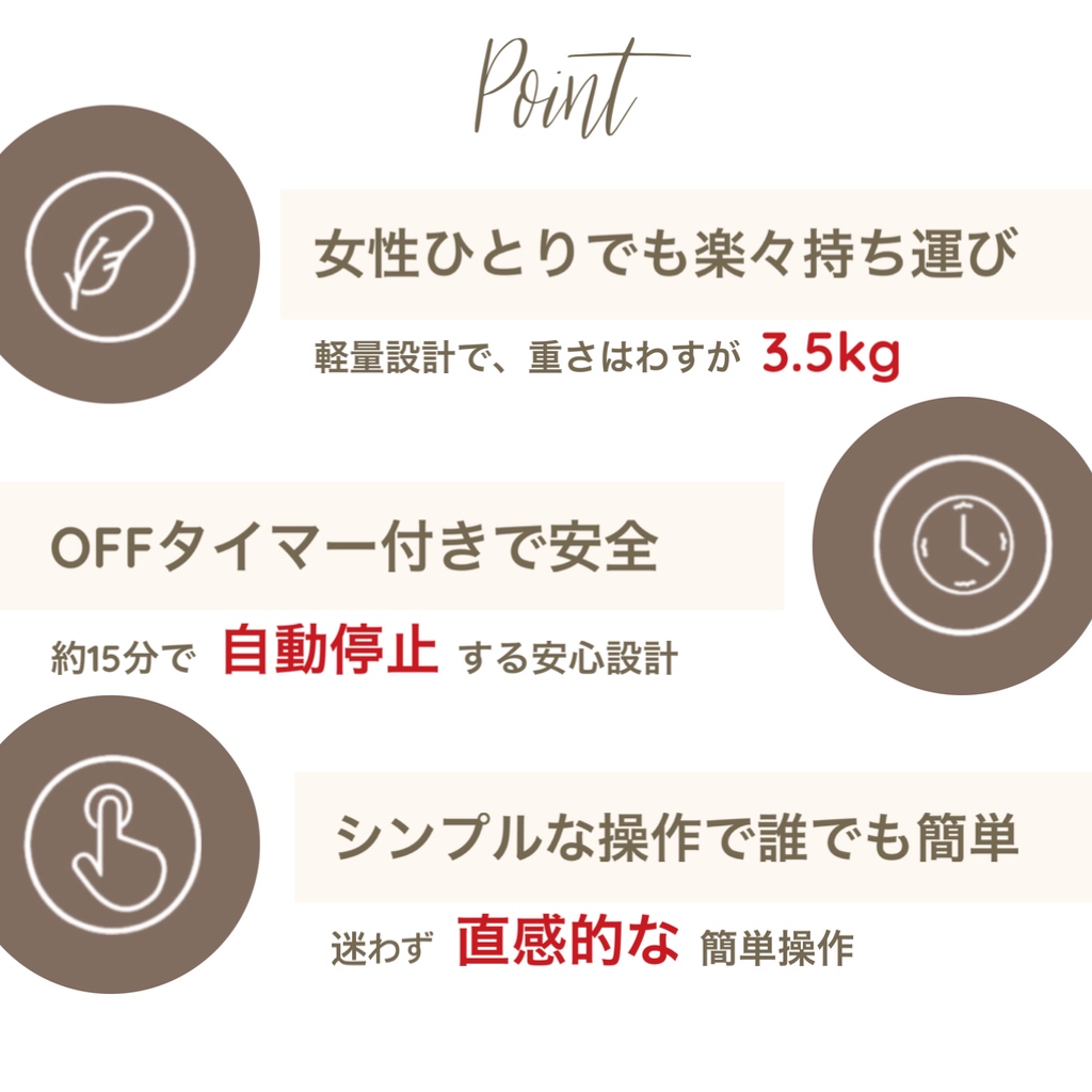 ・ 軽量3.5kg!取っ手付きで移動ラクラク