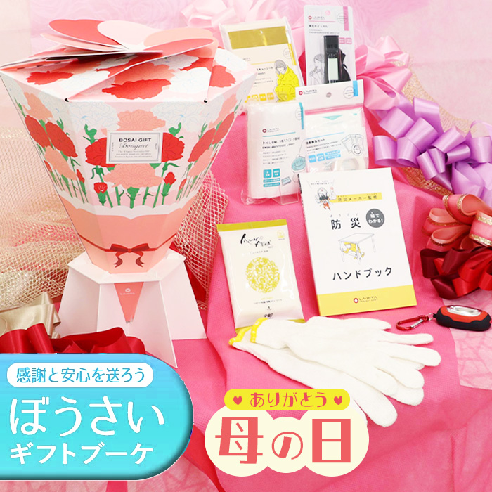感謝と安心を一緒に贈る、母の日の新しいカタチ。ぼうさいギフトブーケセット。