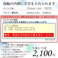 | ■当店だけの特典■ 大切な人とのペアリング。お好みのメッセージをリングの内側に入れることが出来ます。 文字書体はゴシック体と筆記体です。最高10文字程度入れることが出来ます。 伝えたい気持ちをメッセージにしてプレゼントにしても素敵ですね。1本に付き2,100円になります。 |
