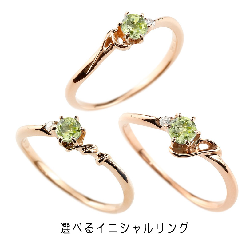 | 宝石名 | ペリドット 3.5ミリ、天然ダイヤモンド 0.01ct(8月誕生石) |