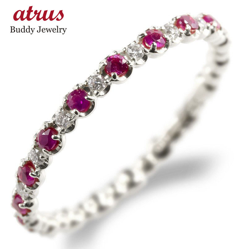 | ≪ご注意≫ | フルエタニティリングは切れ目が無いという構造上、 ご購入後のサイズのお直しが出来ません。 又、カラット数で仕上げるためリングサイズによってダイヤモンドとルビーの数・リング最大幅は前後いたします。 ご確認のうえ、ご購入下さいませ。 |