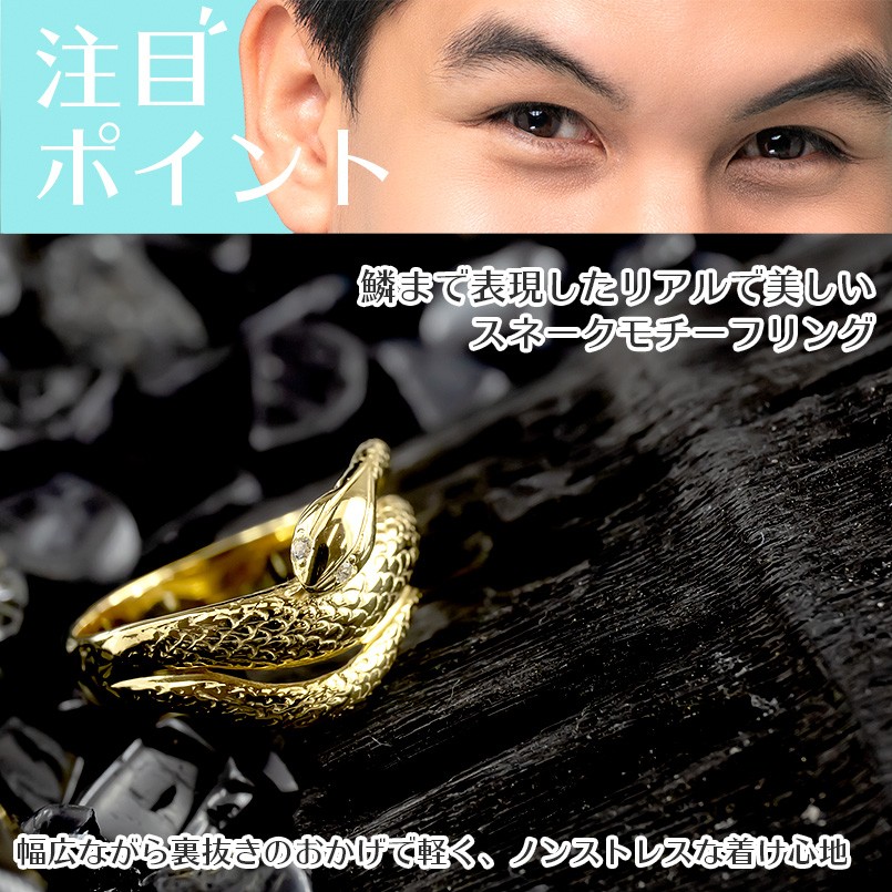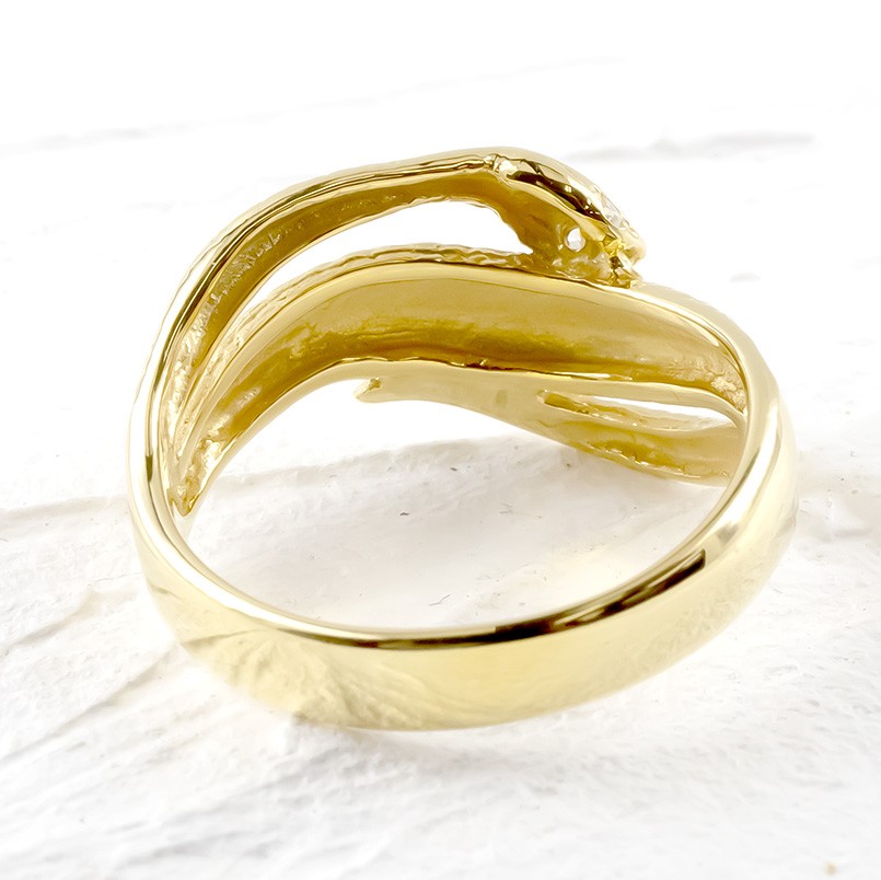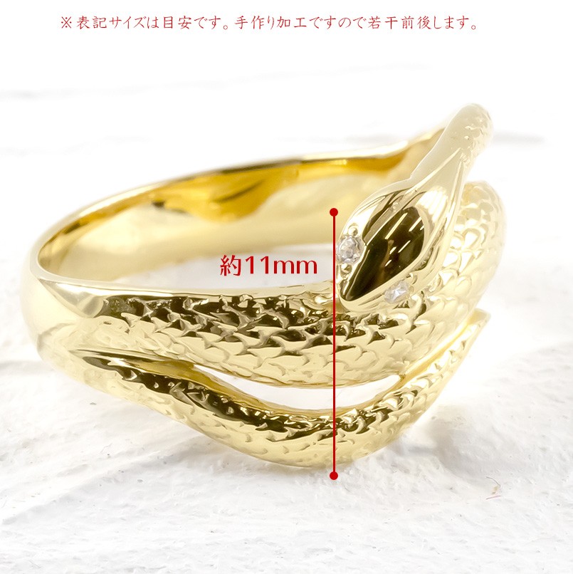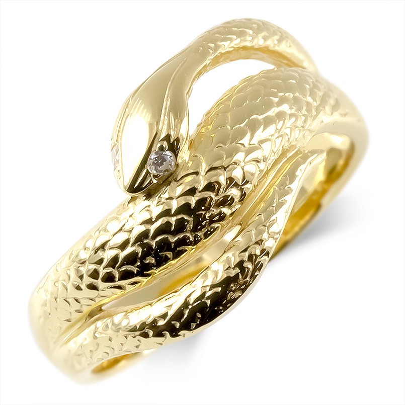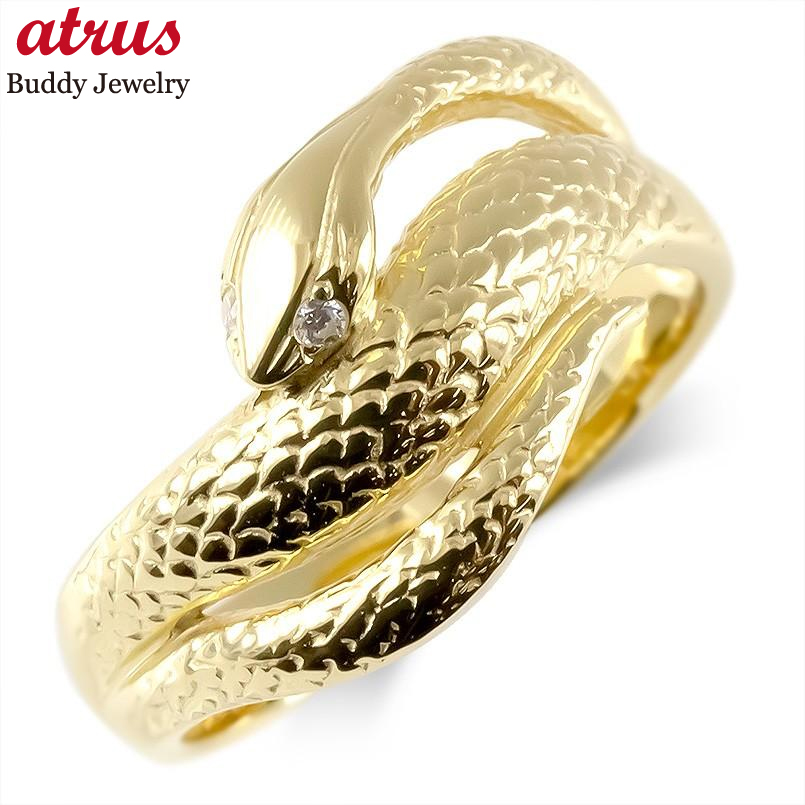 婚約指輪 ゴールド 蛇 リング ダイヤモンド レディース 10k 幅広 太め お守り 指輪 ピンキーリング スネーク ヘビ イエローゴールドk10 送料無料 セール sale