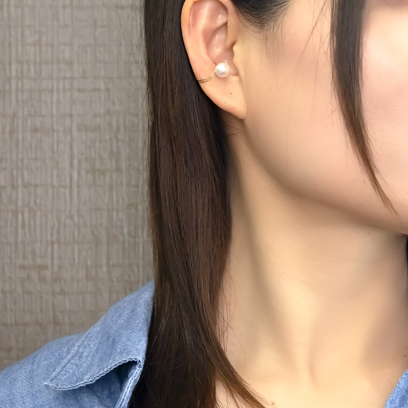 大人に似合う大粒アコヤ真珠のシンプルなイヤカフ