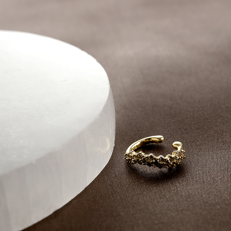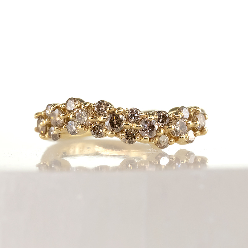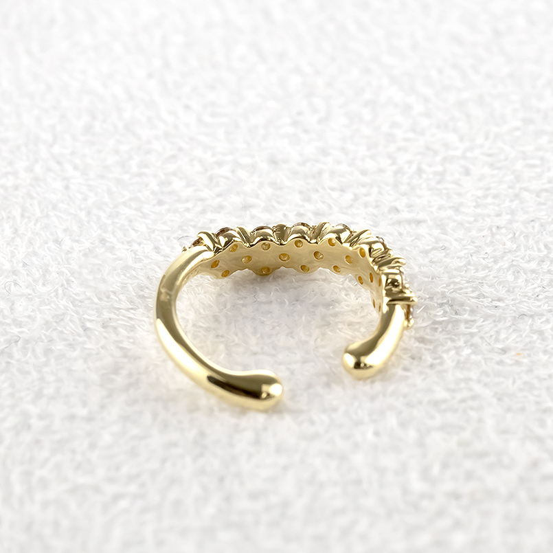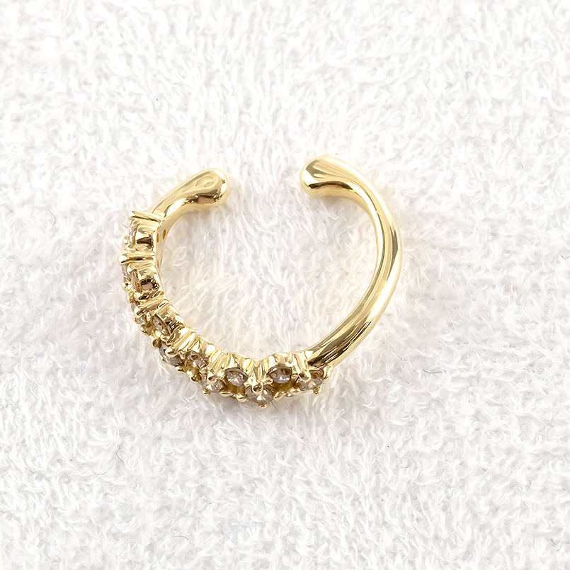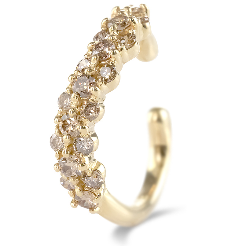 18金のウエーブデザインに19石のブラウンダイヤをしきつめたイヤーカフ