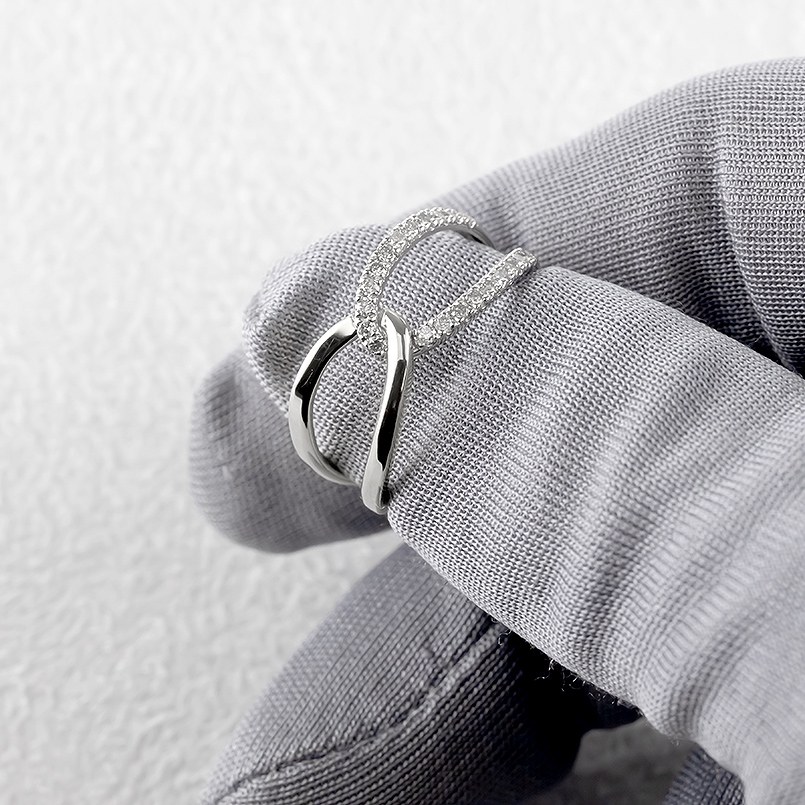 上品なダイヤモンドのセッティングが指先に動きを与える