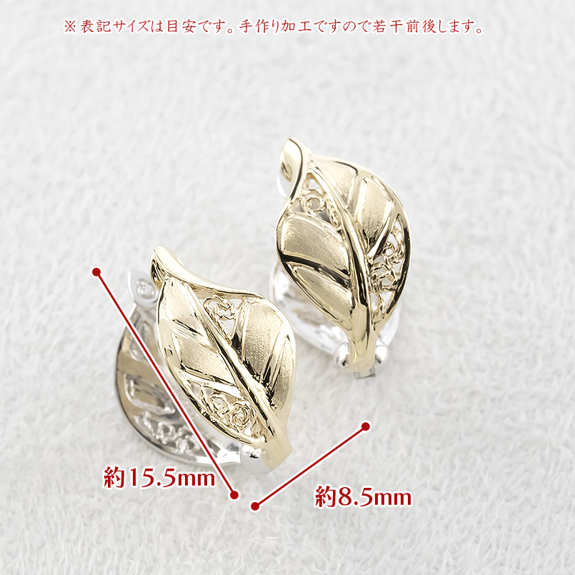 | お勧めポイント | 表裏で異なる地金カラーが楽しめ、季節や装いを選ばない万能ピアリング 正規品ならではの快適なつけ心地と、痛くないジャストフィット設計 つや消し&透かしを施した優しいリーフデザイン ※ピアリングの正規品 ピアス穴がなくてもピアスのように楽しめる、画期的なピアリング 指で軽く挟むだけで装着でき、独自技術(特許申請済み)でしっかりフィット 長時間つけても痛くなりにくく、ノンストレスな大人の耳元ジュエリー |