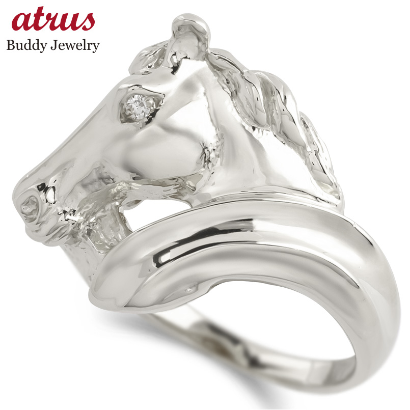 婚約指輪 シルバー リング 馬 ホース ダイヤモンド 一粒 レディース お守り 大きめ sv925 幅広 指輪 ピンキーリング 人気 おしゃれ 送料無料 セール SALE