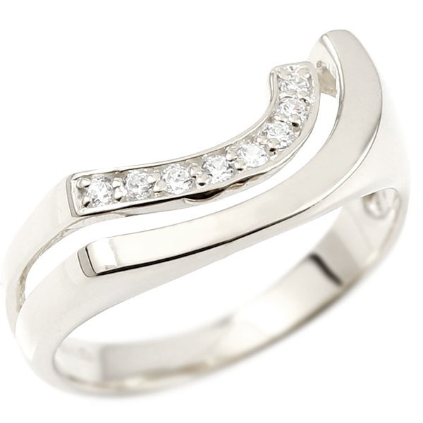 婚約指輪 ダイヤモンドリング シルバー925 エンゲージリング ピンキーリング リング 指輪 ウェーブリング sv925 レディース 緩やかなV字
