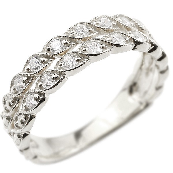 婚約指輪 ダイヤ リング シルバー925 ダイヤモンド エンゲージリング 2連 指輪 ミル打ち ミルグレイン sv925