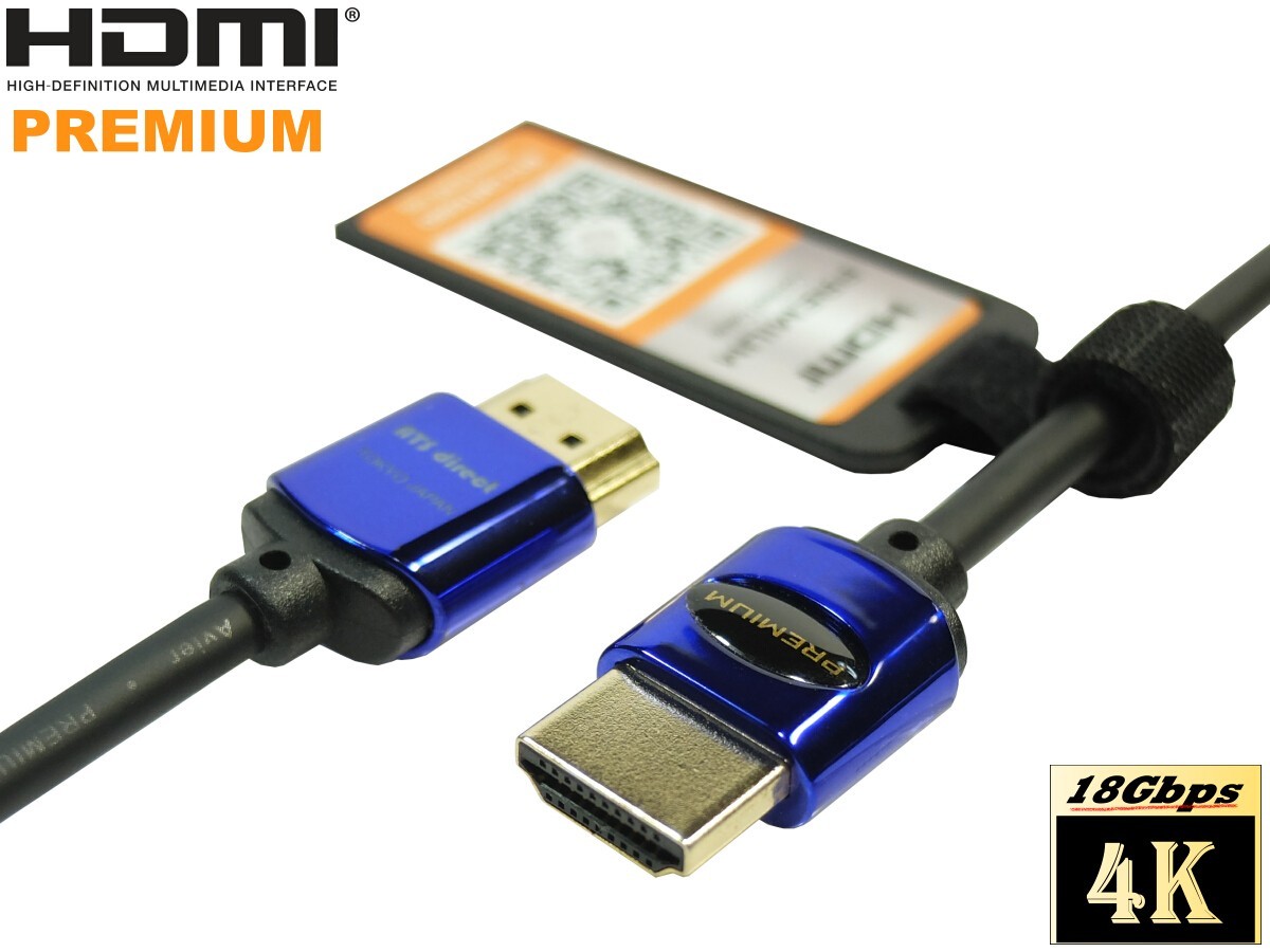 有害六物質を含みません。Premium HDMIはHDMI協会がHDMI2.0(4K2K 60P 4.4.4 24bit 18Gbps)環境での使用を保証、認証したケーブルです。