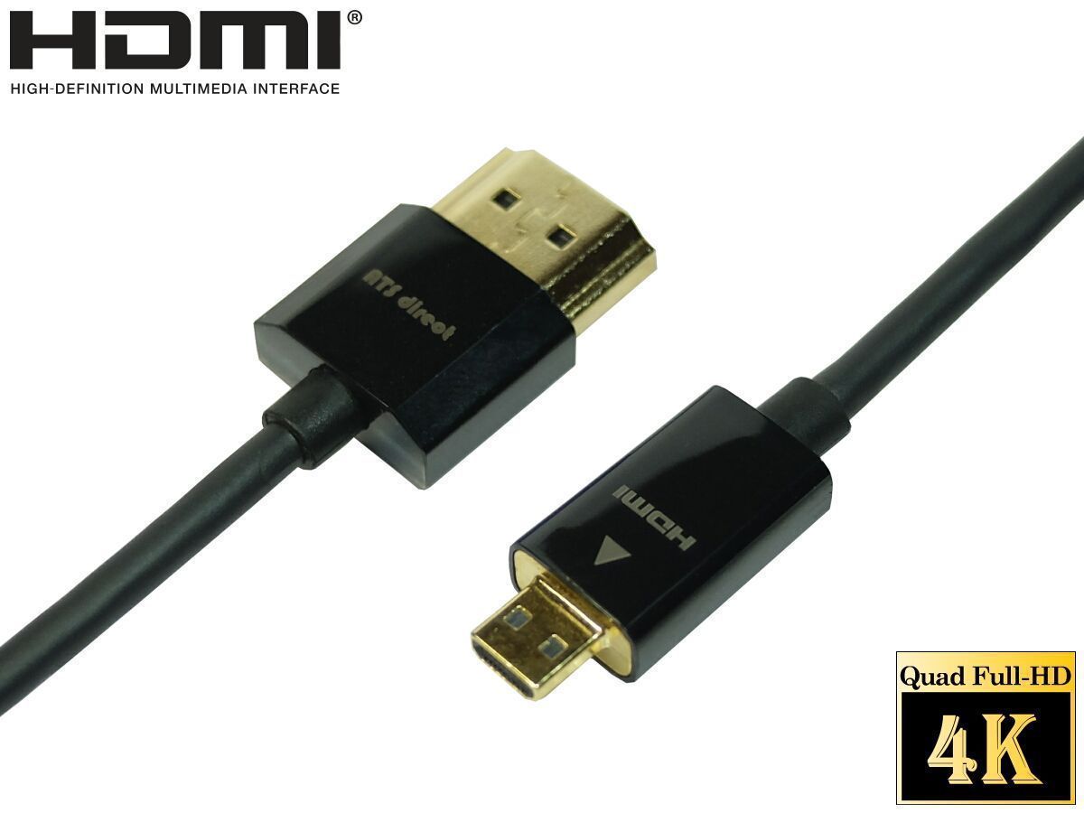 マイクロHDMIケーブル 2.0m スーパースリム Full HD 3D、4K60P イーサネット対応 ネコポス送料無料