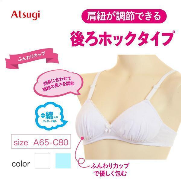 ジュニアブラ 後ろホック ブラジャー ノンワイヤー キッズ ジュニア 綿 無地 アツギ ハイジュニ 93167AS