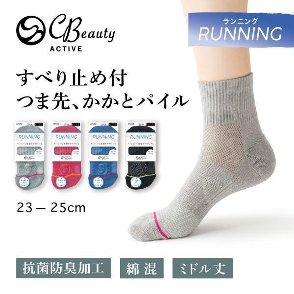 \割引クーポン実施/ 靴下 ミドル丈 ランニングスソックス 婦人 レディース 抗菌防臭加工 足底すべり止め付 綿混 クリアビューティアクティブ アツギ JD46081